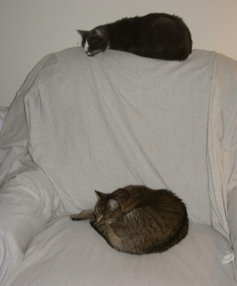 This is how my boys usually sleep on my chair, separate.