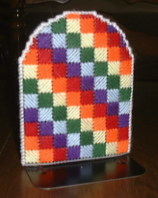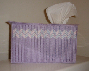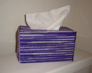 I just used a regular pattern for a tissue box cover and used varigated yarn. I did have to make it taller to fit the taller boxes. |