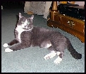 a note to it. The person who the cat "sort of" lived with called me. I finally learned the name of this poor neglected cat. At least, I felt he was neglected. He was always trying to get into our house. He drank from mud puddles. He almost swallowed the food whole when I fed him. Then I noticed he was not even neutered! No one cared enough to have this done.