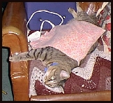 Tiger loves to sleep in Daddy's chair with the heating pad on
