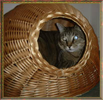 Tiger was given this basket when he was younger, but would not use it. Until I gave it to Thomas.